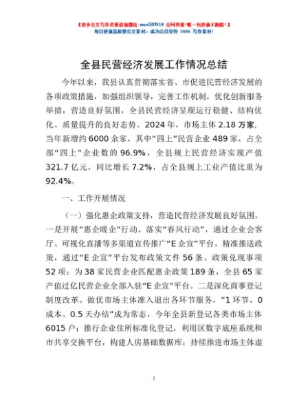 / 全县民营经济发展工作情况总结