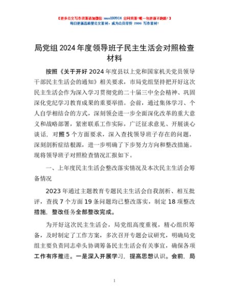 / 局党组2024年度领导班子民主生活会对照检查材料
