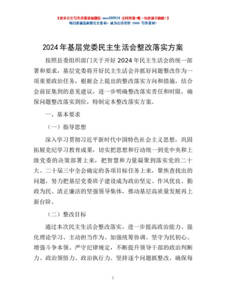 / 2024年基层党委民主生活会整改落实方案