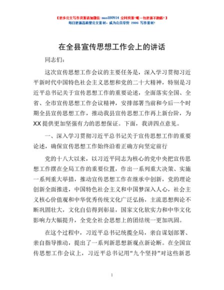 / 在全县宣传思想工作会上的讲话