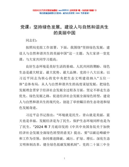 党课:坚持绿色发展,建设人与自然和谐共生的美丽中国