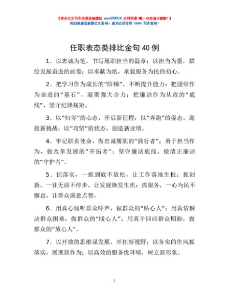 / 任职表态类排比金句40例