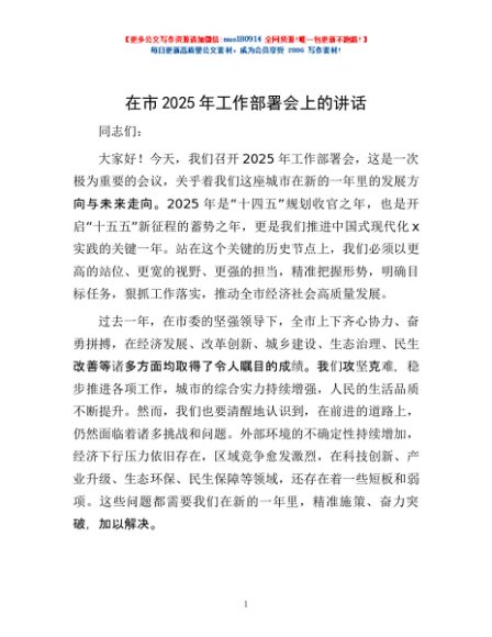 / 在市2025年工作部署会上的讲话