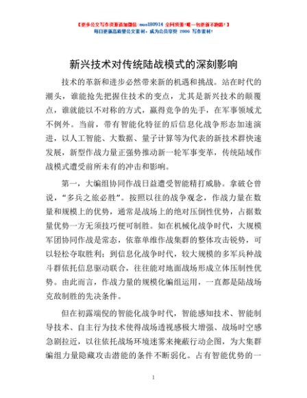 / 新兴技术对传统陆战模式的深刻影响