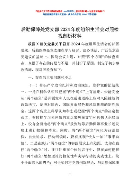 / 后勤保障处党支部2024年度组织生活会对照检视剖析材料