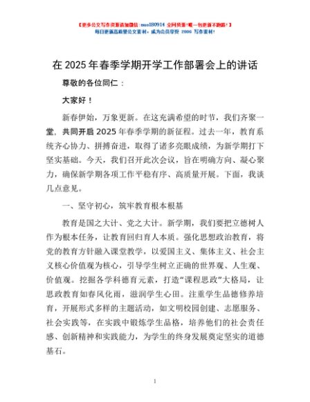 / 在2025年春季学期开学工作部署会上的讲话
