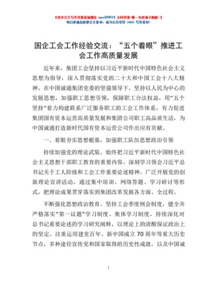 / 国企工会工作经验交流:“五个着眼”推进工会工作高质量发展