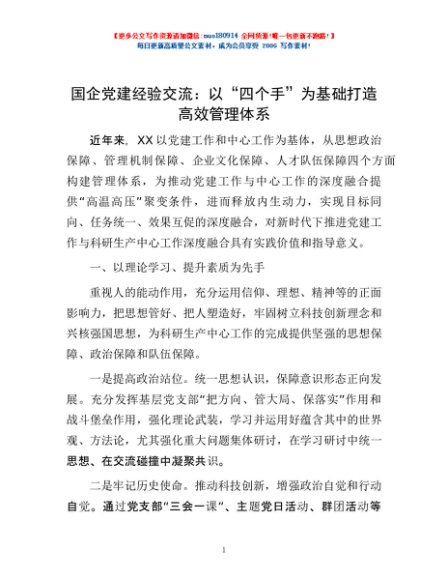 / 国企党建经验交流:以“四个手”为基础 打造高效管理体系