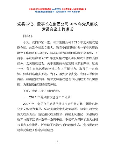/ 党委书记、董事长在集团公司2025年党风廉政建设会议上的讲话