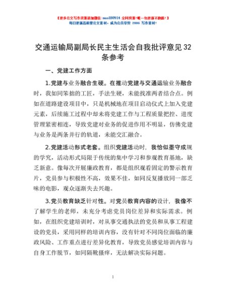 / 交通运输局副局长民主生活会自我批评意见32条参考