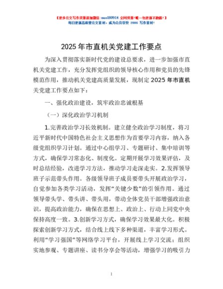 / 2025年市直机关党建工作要点