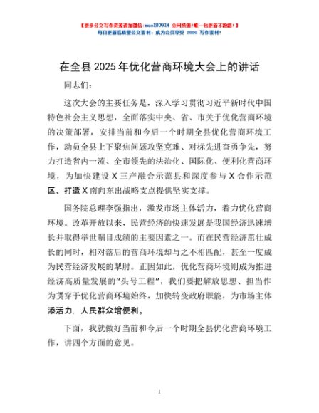 / 在全县2025年优化营商环境大会上的讲话