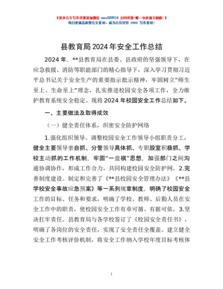/ 县教育局2024年安全工作总结