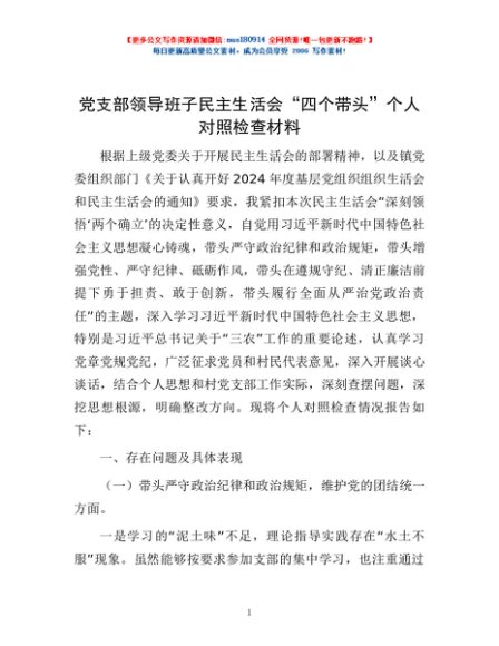 / 党支部领导班子民主生活会“四个带头”个人对照检查材料