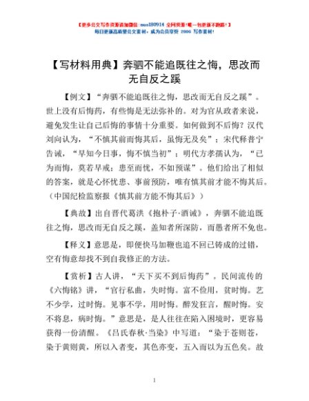 【写材料用典】奔驷不能追既往之悔,思改而无自反之蹊