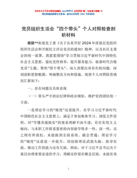 / 党员组织生活会“四个带头”个人对照检查剖析材料