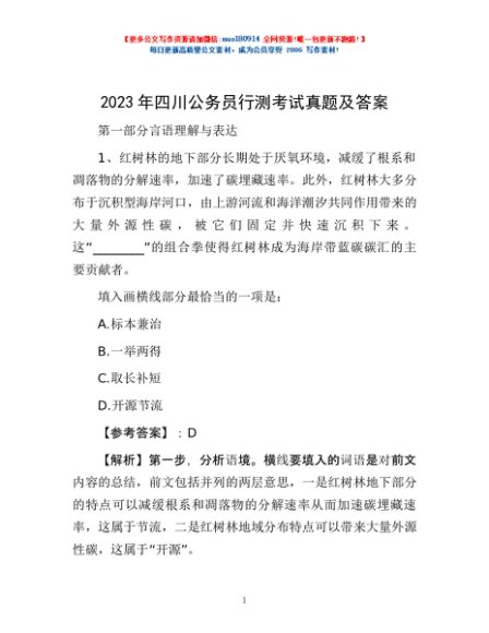 / 2023年四川公务员行测考试真题及答案