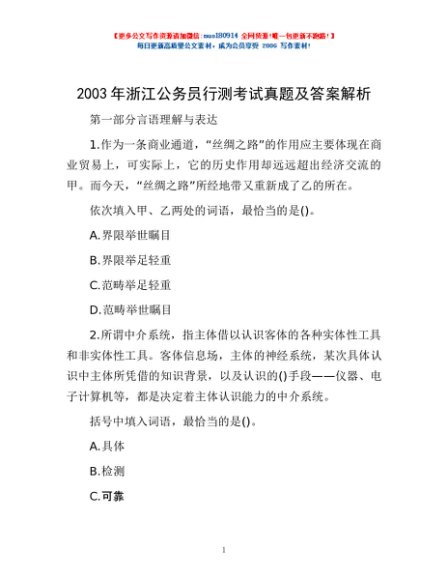 2003年浙江公务员行测考试真题及答案解析