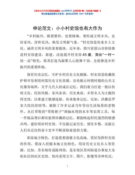 / 申论范文:小小村史馆 也有大作为