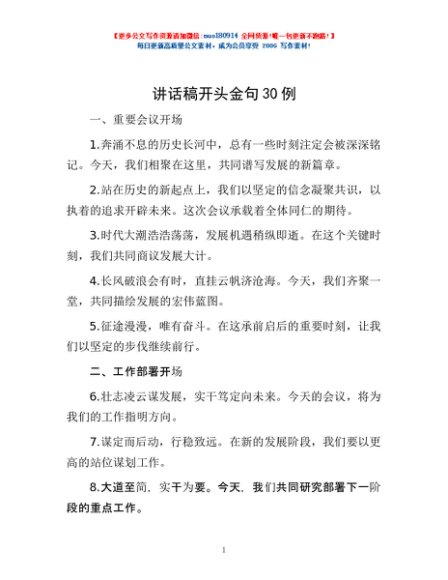 / 讲话稿开头金句30例