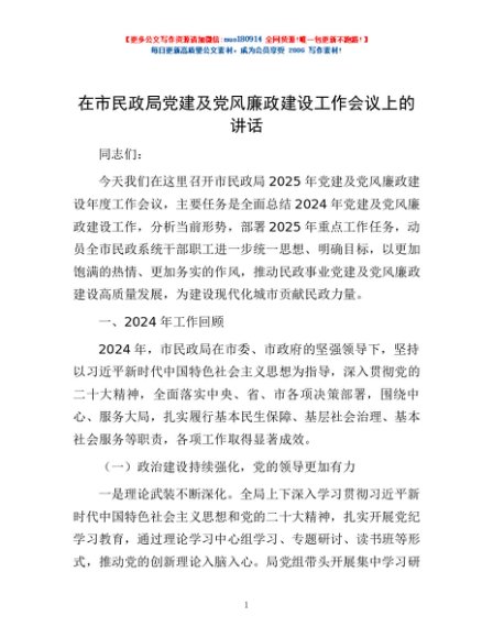 / 在市民政局党建及党风廉政建设工作会议上的讲话