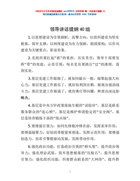 / 领导讲话提纲40组
