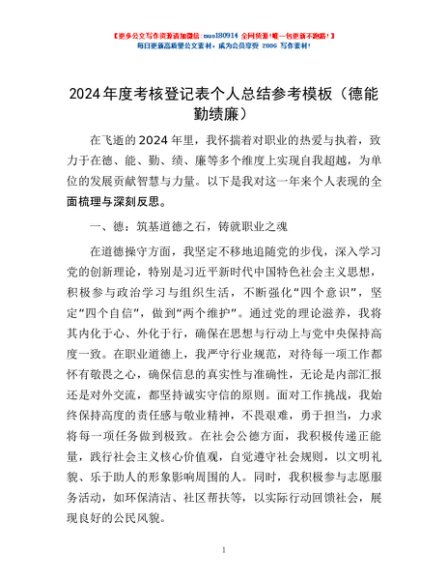 / 2024年度考核登记表个人总结参考模板(德能勤绩廉)
