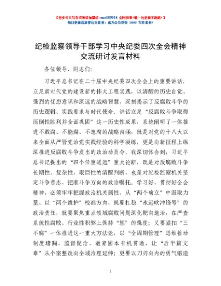/ 纪检监察领导干部学习中央纪委四次全会精神交流研讨发言材料