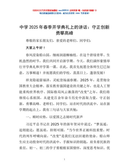 / 中学2025年春季开学典礼上的讲话:守正创新勇攀高峰
