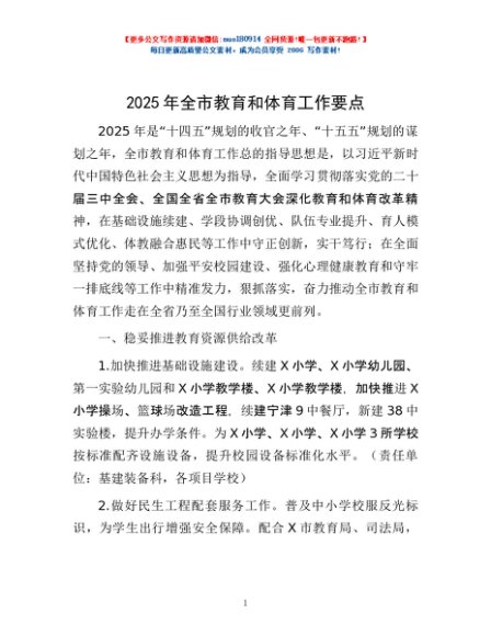 / 2025年全市教育和体育工作要点