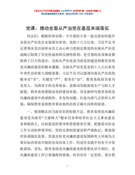 / 党课:推动全面从严治党在基层末端落实