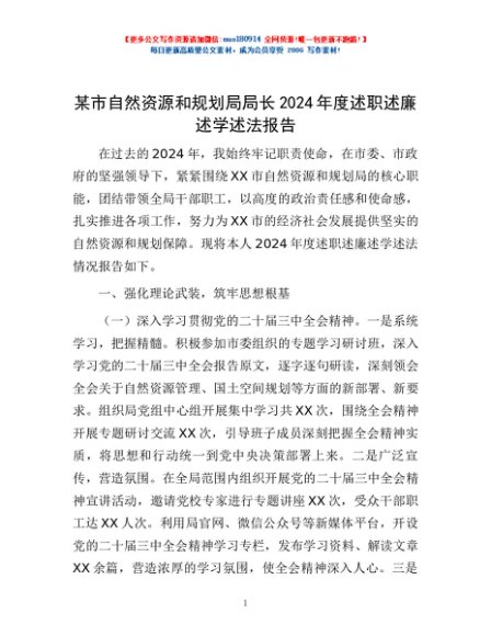 / 某市自然资源和规划局局长2024年度述职述廉述学述法报告