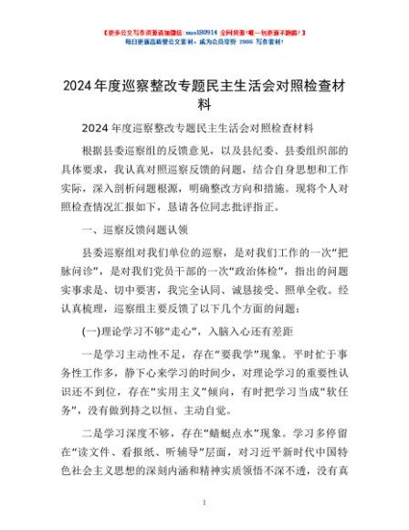 / 2024年度巡察整改专题民主生活会对照检查材料