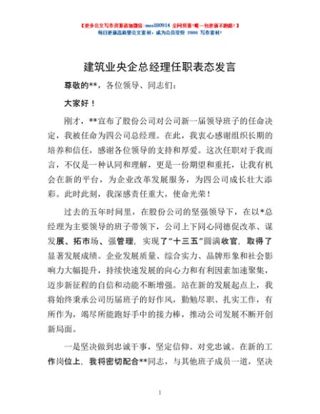 / 建筑业央企总经理任职表态发言