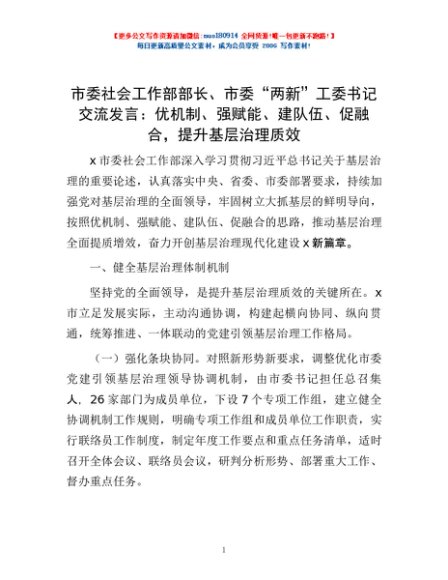 / 市委社会工作部部长、市委“两新”工委书记交流发言:优机制、强赋能、建队伍、促融合,提升基层治理质效