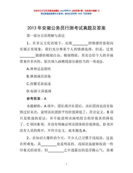 / 2013年安徽公务员行测考试真题及答案