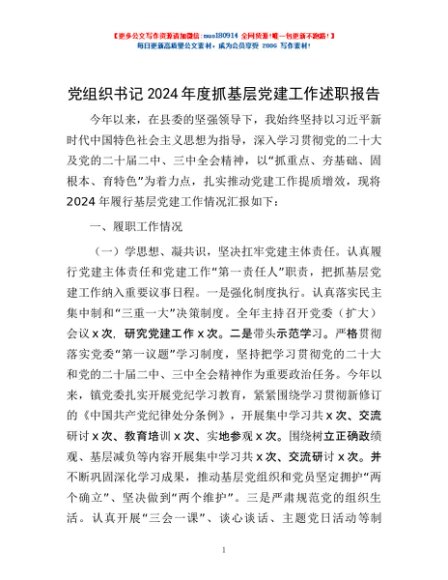 / 党组织书记2024年度抓基层党建工作述职报告