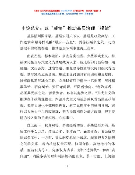 / 申论范文:以“减负”推动基层治理“提能”