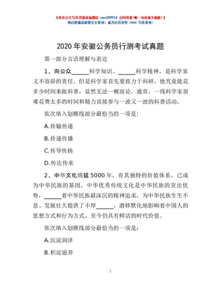 / 2020年安徽公务员行测考试真题