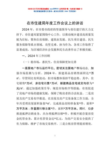 / 在市住建局年度工作会议上的讲话