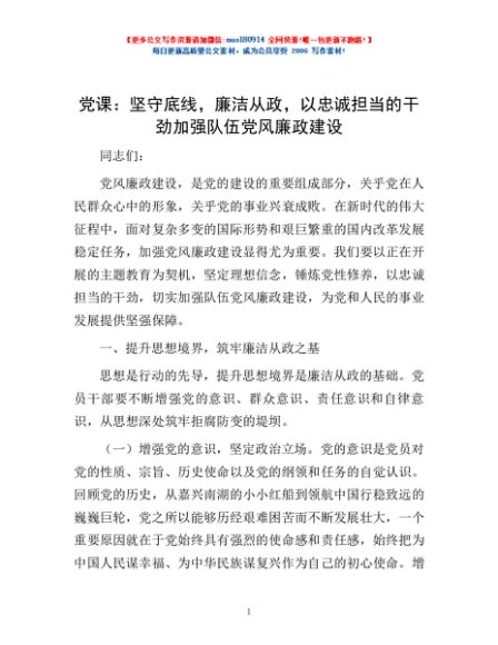 / 党课:坚守底线,廉洁从政,以忠诚担当的干劲加强队伍党风廉政建设