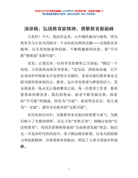 / 演讲稿:弘扬教育家精神,勇攀教育新巅峰