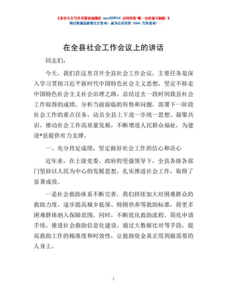 / 在全县社会工作会议上的讲话