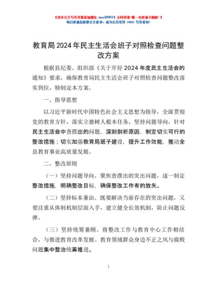 / 教育局2024年民主生活会班子对照检查问题整改方案
