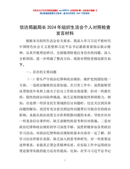 / 信访局副局长2024年组织生活会个人对照检查发言材料