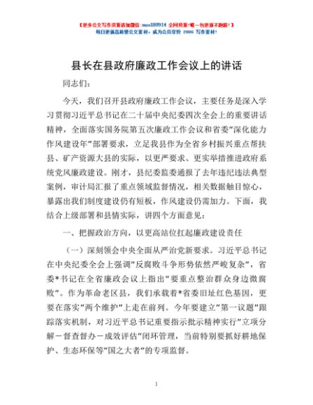 / 县长在县政府廉政工作会议上的讲话