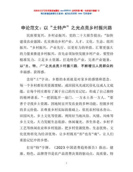 / 申论范文:以“土特产”之光点亮乡村振兴路