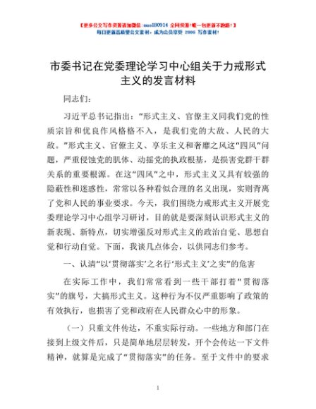 / 市委书记在党委理论学习中心组关于力戒形式主义的发言材料