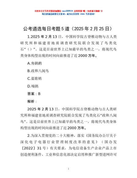 / 公考遴选每日考题5道(2025年2月25日)