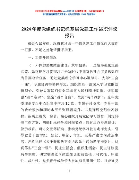 / 2024年度党组织书记抓基层党建工作述职评议报告